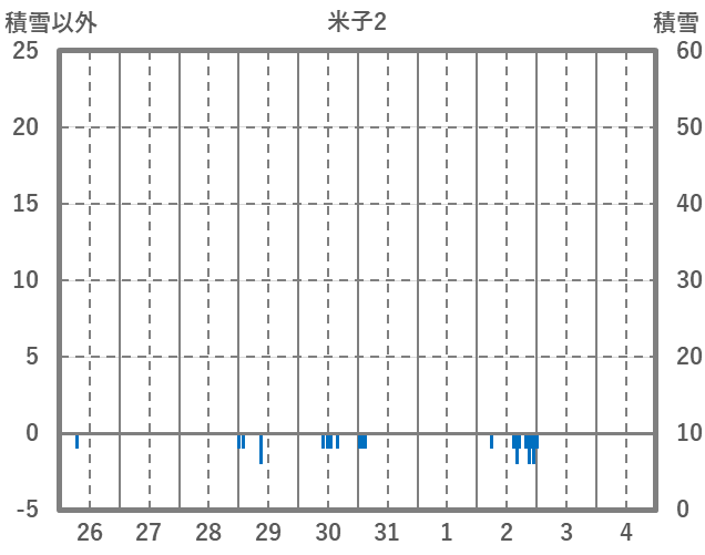 | 日 | 時 | 気温 | 降水 | 風向/風速 | 日照 | 積雪 | 降雪 |