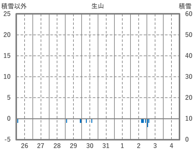 | 日 | 時 | 気温 | 降水 | 風向/風速 | 日照 | 積雪 | 降雪 |