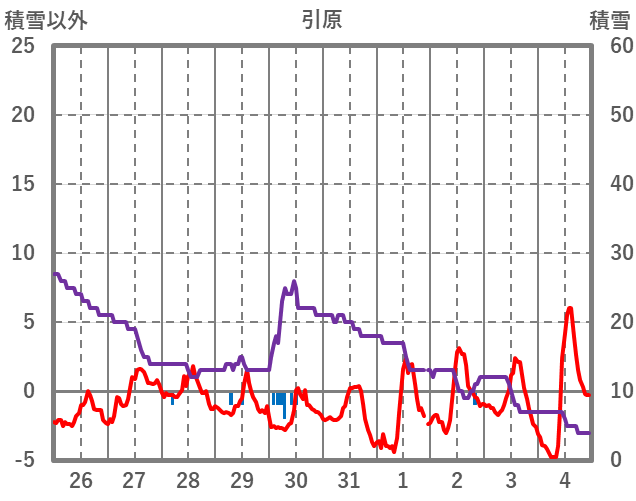 | 日 | 時 | 気温 | 降水 | 風向/風速 | 日照 | 積雪 | 降雪 |
