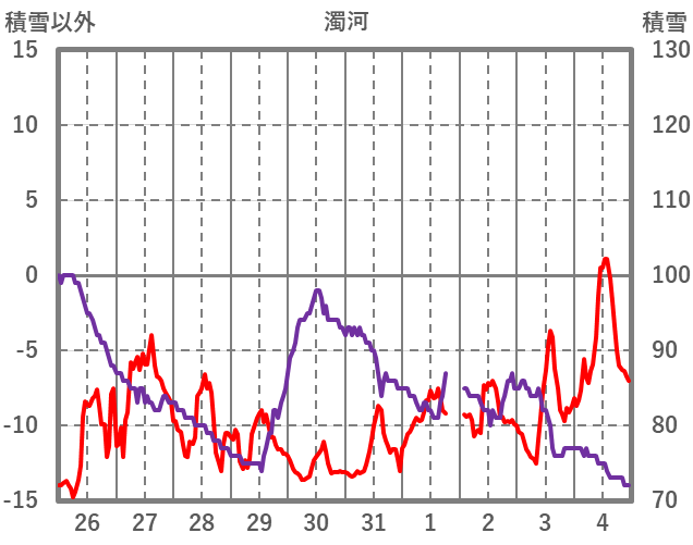 | 日 | 時 | 気温 | 降水 | 風向/風速 | 日照 | 積雪 | 降雪 |