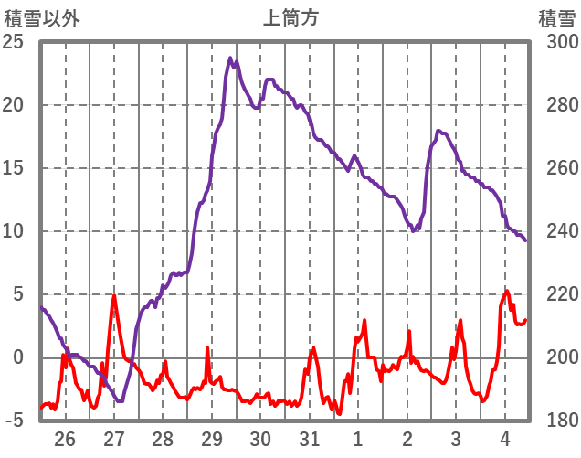 | 日 | 時 | 気温 | 降水 | 風向/風速 | 日照 | 積雪 | 降雪 |