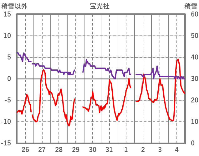 | 日 | 時 | 気温 | 降水 | 風向/風速 | 日照 | 積雪 | 降雪 |