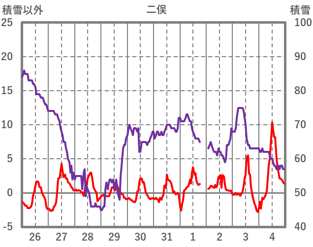 | 日 | 時 | 気温 | 降水 | 風向/風速 | 日照 | 積雪 | 降雪 |