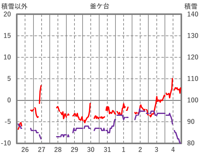 | 日 | 時 | 気温 | 降水 | 風向/風速 | 日照 | 積雪 | 降雪 |