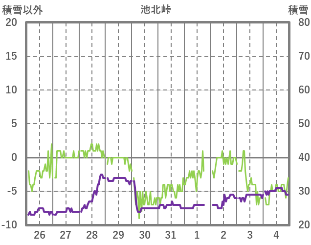 | 日 | 時 | 気温 | 降水 | 風向/風速 | 日照 | 積雪 | 降雪 |