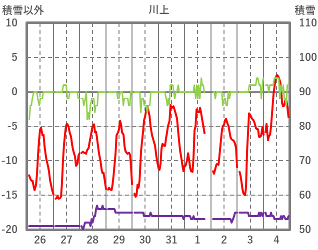 | 日 | 時 | 気温 | 降水 | 風向/風速 | 日照 | 積雪 | 降雪 |