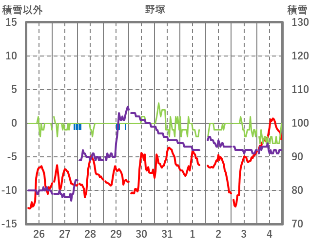| 日 | 時 | 気温 | 降水 | 風向/風速 | 日照 | 積雪 | 降雪 |