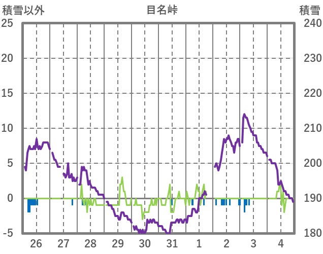 | 日 | 時 | 気温 | 降水 | 風向/風速 | 日照 | 積雪 | 降雪 |