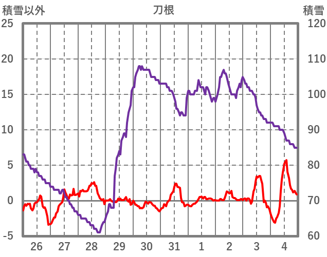 | 日 | 時 | 気温 | 降水 | 風向/風速 | 日照 | 積雪 | 降雪 |