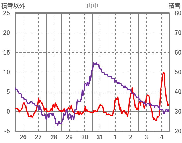 | 日 | 時 | 気温 | 降水 | 風向/風速 | 日照 | 積雪 | 降雪 |
