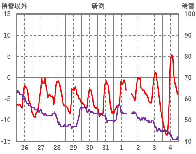 | 日 | 時 | 気温 | 降水 | 風向/風速 | 日照 | 積雪 | 降雪 |