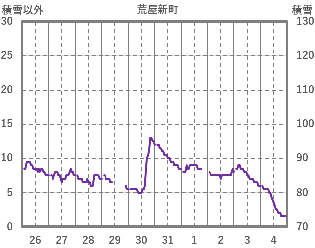 | 日 | 時 | 気温 | 降水 | 風向/風速 | 日照 | 積雪 | 降雪 |