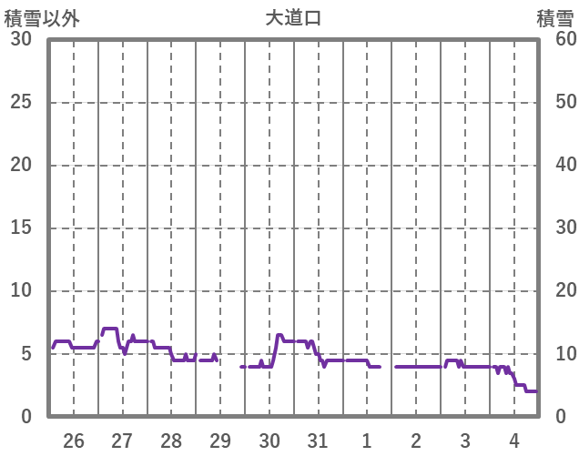 | 日 | 時 | 気温 | 降水 | 風向/風速 | 日照 | 積雪 | 降雪 |