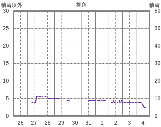 | 日 | 時 | 気温 | 降水 | 風向/風速 | 日照 | 積雪 | 降雪 |
