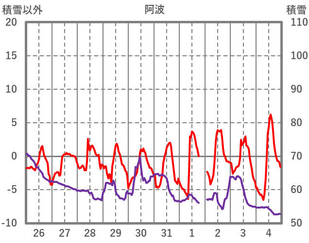 | 日 | 時 | 気温 | 降水 | 風向/風速 | 日照 | 積雪 | 降雪 |