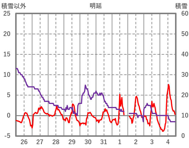 | 日 | 時 | 気温 | 降水 | 風向/風速 | 日照 | 積雪 | 降雪 |