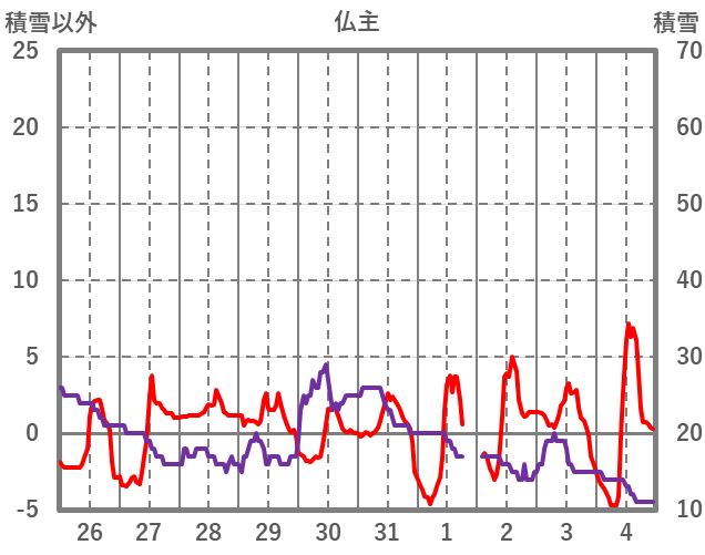 | 日 | 時 | 気温 | 降水 | 風向/風速 | 日照 | 積雪 | 降雪 |