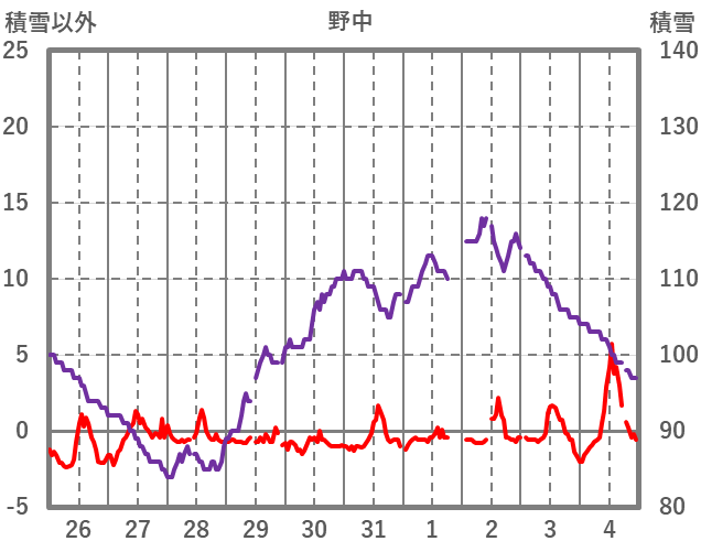 | 日 | 時 | 気温 | 降水 | 風向/風速 | 日照 | 積雪 | 降雪 |