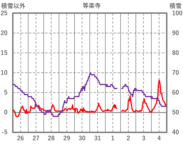 | 日 | 時 | 気温 | 降水 | 風向/風速 | 日照 | 積雪 | 降雪 |