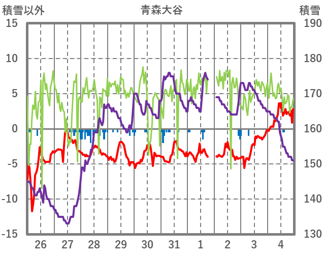 | 日 | 時 | 気温 | 降水 | 風向/風速 | 日照 | 積雪 | 降雪 |
