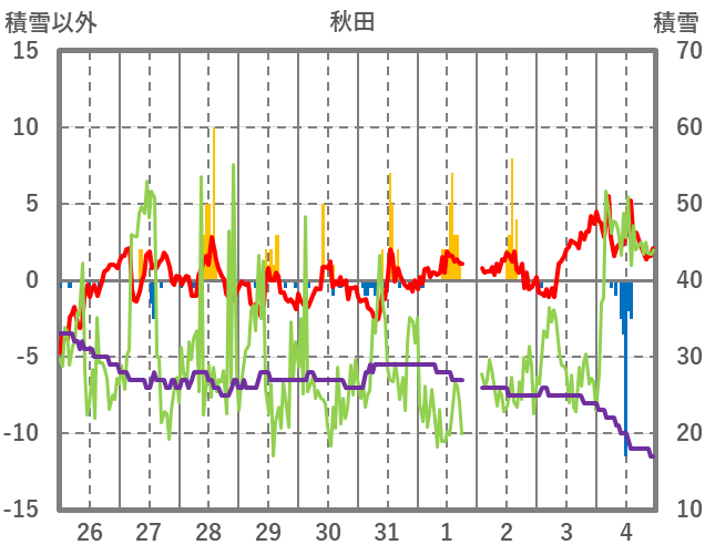 | 日 | 時 | 気温 | 降水 | 風向/風速 | 日照 | 積雪 | 降雪 |