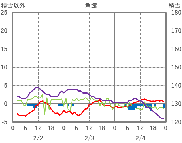 | 日 | 時 | 気温 | 降水 | 風向/風速 | 日照 | 積雪 | 降雪 |