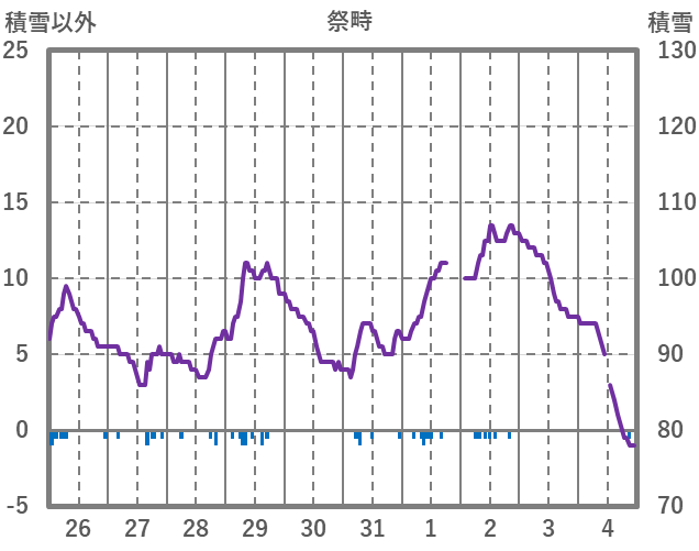 | 日 | 時 | 気温 | 降水 | 風向/風速 | 日照 | 積雪 | 降雪 |