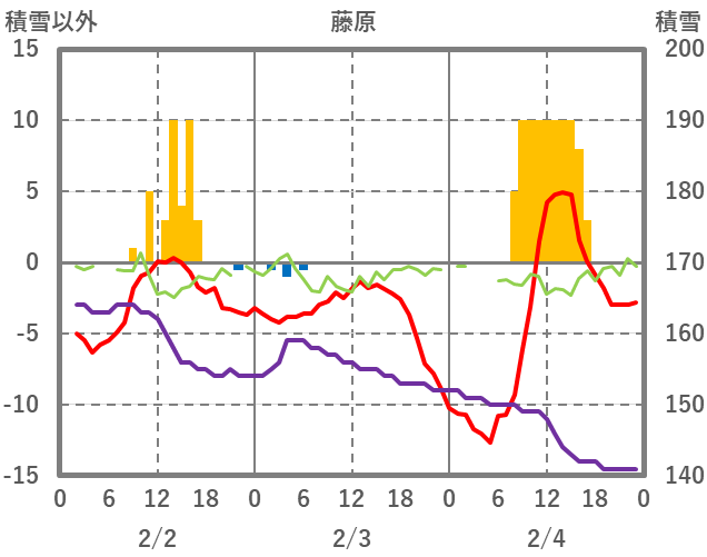 | 日 | 時 | 気温 | 降水 | 風向/風速 | 日照 | 積雪 | 降雪 |