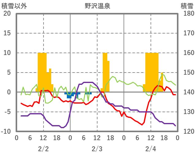 | 日 | 時 | 気温 | 降水 | 風向/風速 | 日照 | 積雪 | 降雪 |