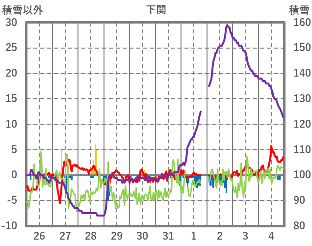 | 日 | 時 | 気温 | 降水 | 風向/風速 | 日照 | 積雪 | 降雪 |