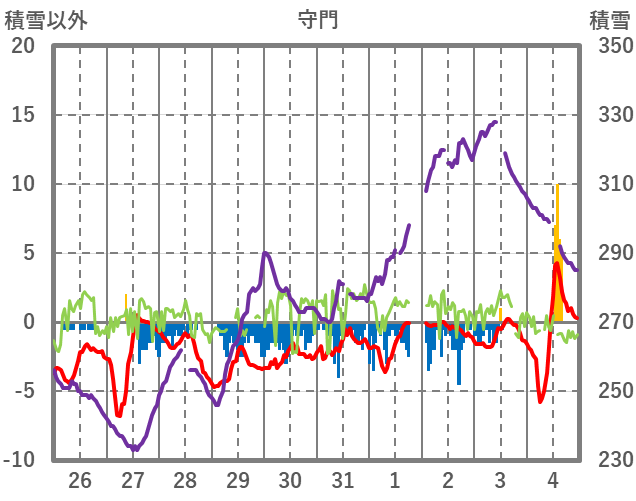 | 日 | 時 | 気温 | 降水 | 風向/風速 | 日照 | 積雪 | 降雪 |