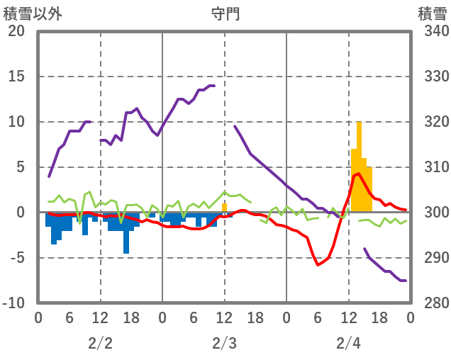 | 日 | 時 | 気温 | 降水 | 風向/風速 | 日照 | 積雪 | 降雪 |