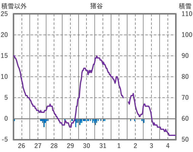 | 日 | 時 | 気温 | 降水 | 風向/風速 | 日照 | 積雪 | 降雪 |
