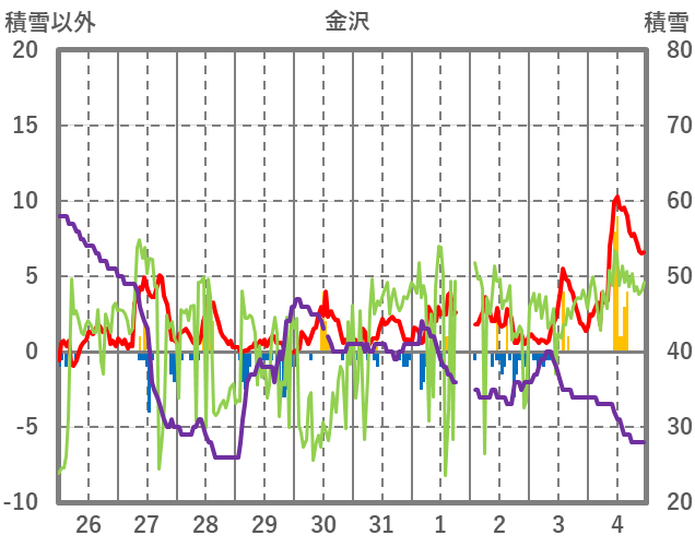 | 日 | 時 | 気温 | 降水 | 風向/風速 | 日照 | 積雪 | 降雪 |