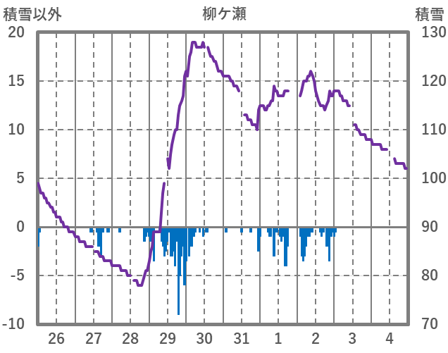 | 日 | 時 | 気温 | 降水 | 風向/風速 | 日照 | 積雪 | 降雪 |