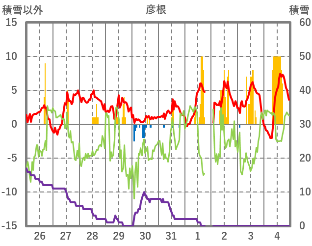 | 日 | 時 | 気温 | 降水 | 風向/風速 | 日照 | 積雪 | 降雪 |