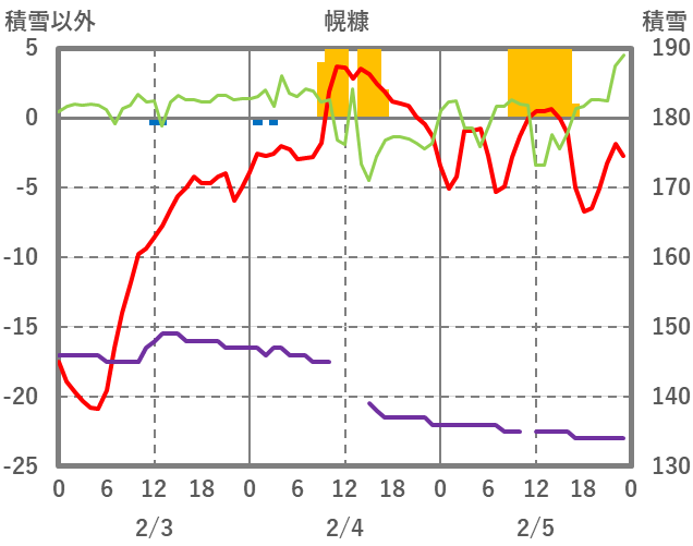 | 日 | 時 | 気温 | 降水 | 風向/風速 | 日照 | 積雪 | 降雪 |