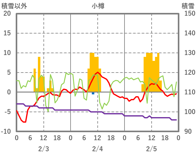 | 日 | 時 | 気温 | 降水 | 風向/風速 | 日照 | 積雪 | 降雪 |