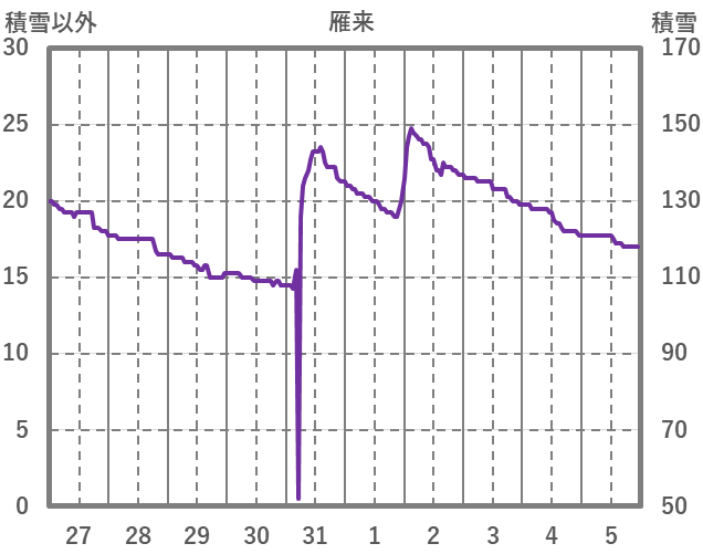 | 日 | 時 | 気温 | 降水 | 風向/風速 | 日照 | 積雪 | 降雪 |