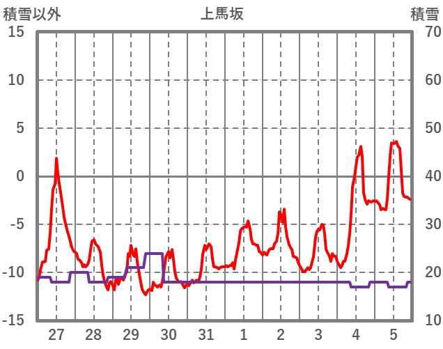 | 日 | 時 | 気温 | 降水 | 風向/風速 | 日照 | 積雪 | 降雪 |