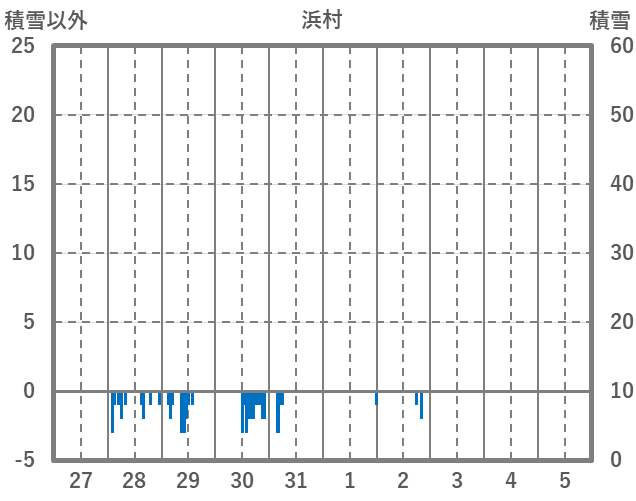 | 日 | 時 | 気温 | 降水 | 風向/風速 | 日照 | 積雪 | 降雪 |
