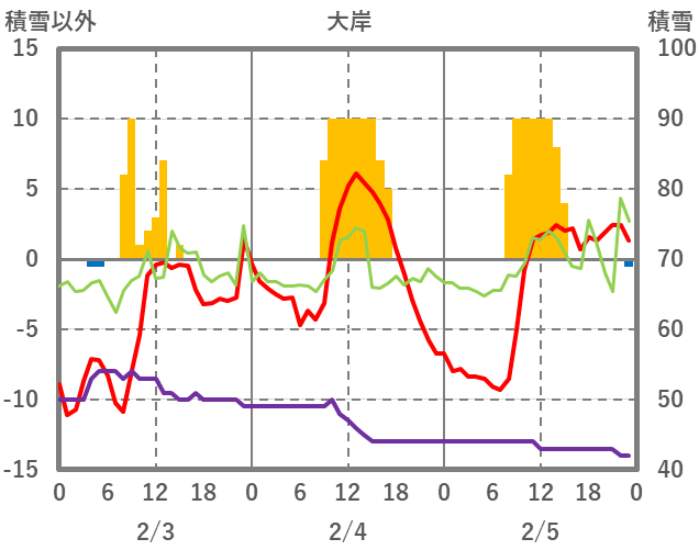 | 日 | 時 | 気温 | 降水 | 風向/風速 | 日照 | 積雪 | 降雪 |