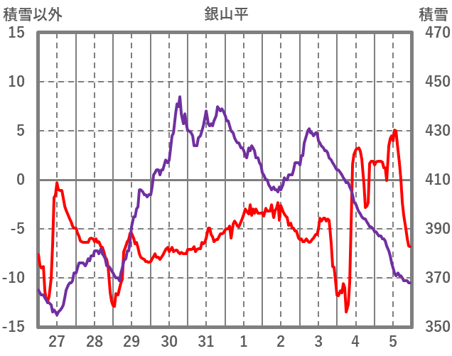 | 日 | 時 | 気温 | 降水 | 風向/風速 | 日照 | 積雪 | 降雪 |