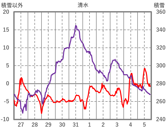 | 日 | 時 | 気温 | 降水 | 風向/風速 | 日照 | 積雪 | 降雪 |