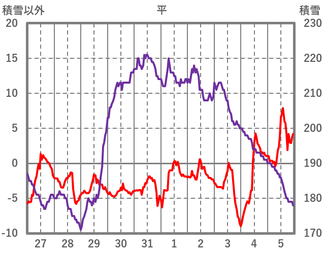 | 日 | 時 | 気温 | 降水 | 風向/風速 | 日照 | 積雪 | 降雪 |