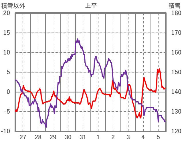 | 日 | 時 | 気温 | 降水 | 風向/風速 | 日照 | 積雪 | 降雪 |