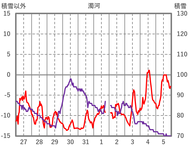 | 日 | 時 | 気温 | 降水 | 風向/風速 | 日照 | 積雪 | 降雪 |