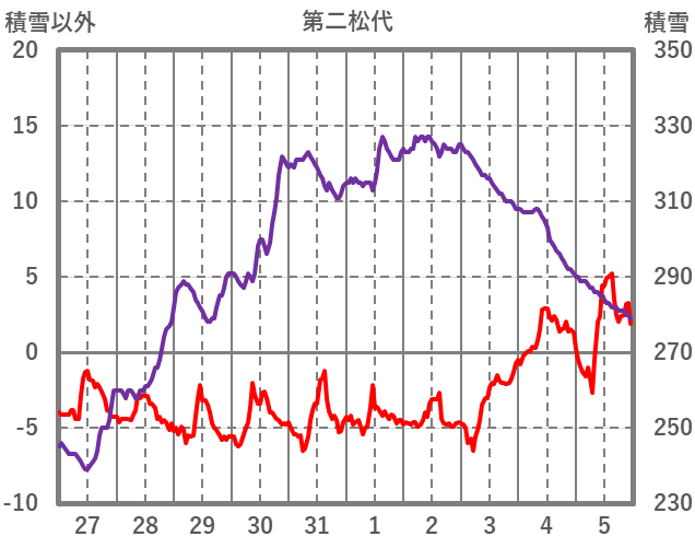 | 日 | 時 | 気温 | 降水 | 風向/風速 | 日照 | 積雪 | 降雪 |