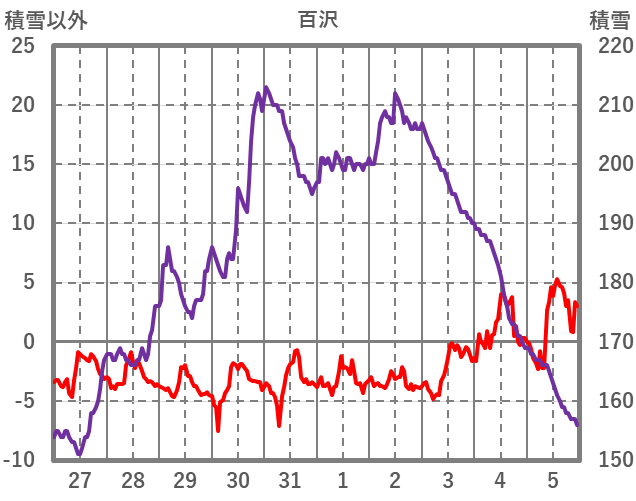 | 日 | 時 | 気温 | 降水 | 風向/風速 | 日照 | 積雪 | 降雪 |