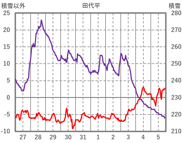 | 日 | 時 | 気温 | 降水 | 風向/風速 | 日照 | 積雪 | 降雪 |